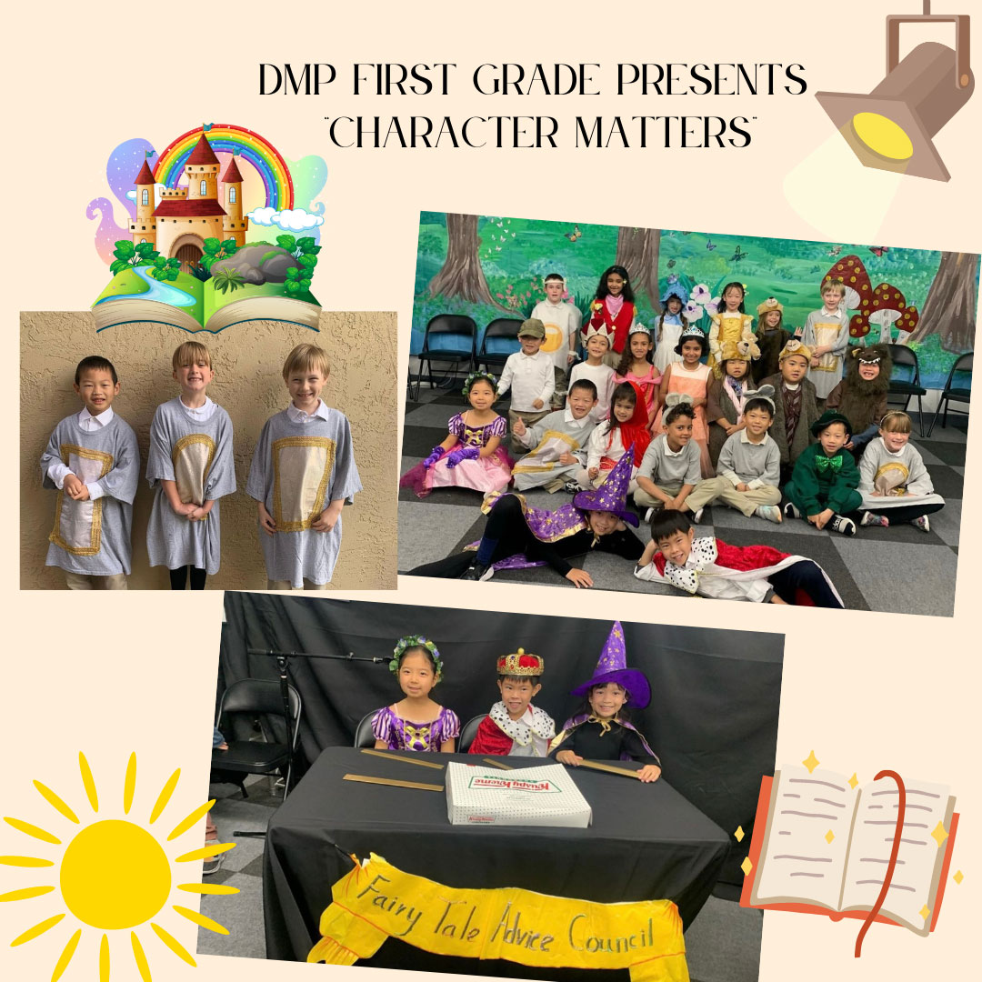 Once again, DMP first graders put on a fantastic play. The fairy tale advice council taught many important lessons starting with the golden rule. Character Matters is a delightful play that reinforces many of the important character traits we hope to see in all our students. First graders reminded us to not judge a book by its cover and to be grateful, polite and a good neighbors.