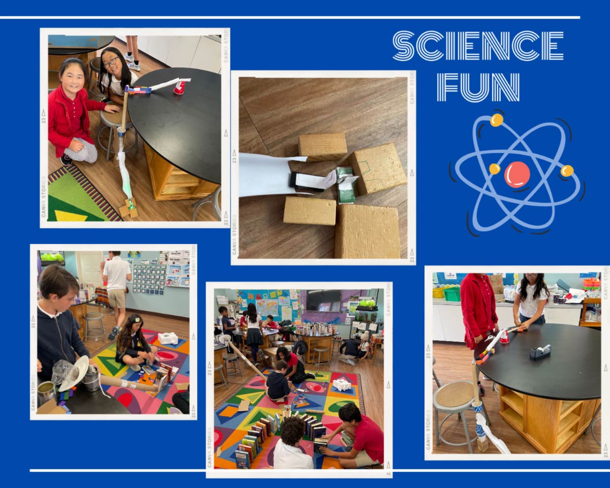 DMP fourth graders built Rube Goldberg machines to turn on and LED flashlights they created.