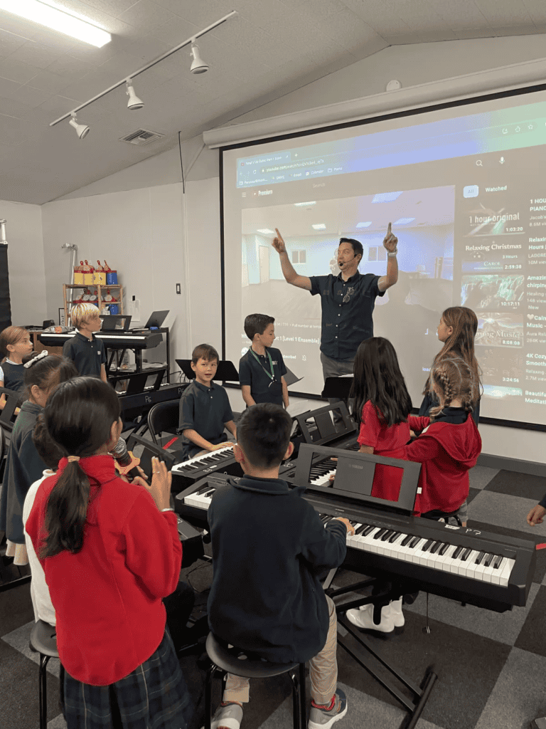 Students at Del Mar Pines start with the fundamentals, including music theory, how beats and rhythm support the melody, and the various music genres. They immediately put what they learn to work through musical instruments, starting with the xylophones and various types of percussion from kindergarten through second grade.